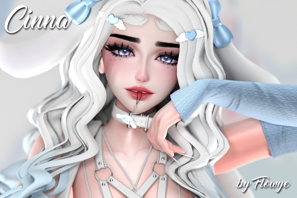 Accessories: Harness , Garters , Face stones , Bow , Hair clips , Halo , Ears , Backpack , Cinnam0r0ll , Mouth charm , Choker , Arm warmers , Tail , Wings , Cupcake .