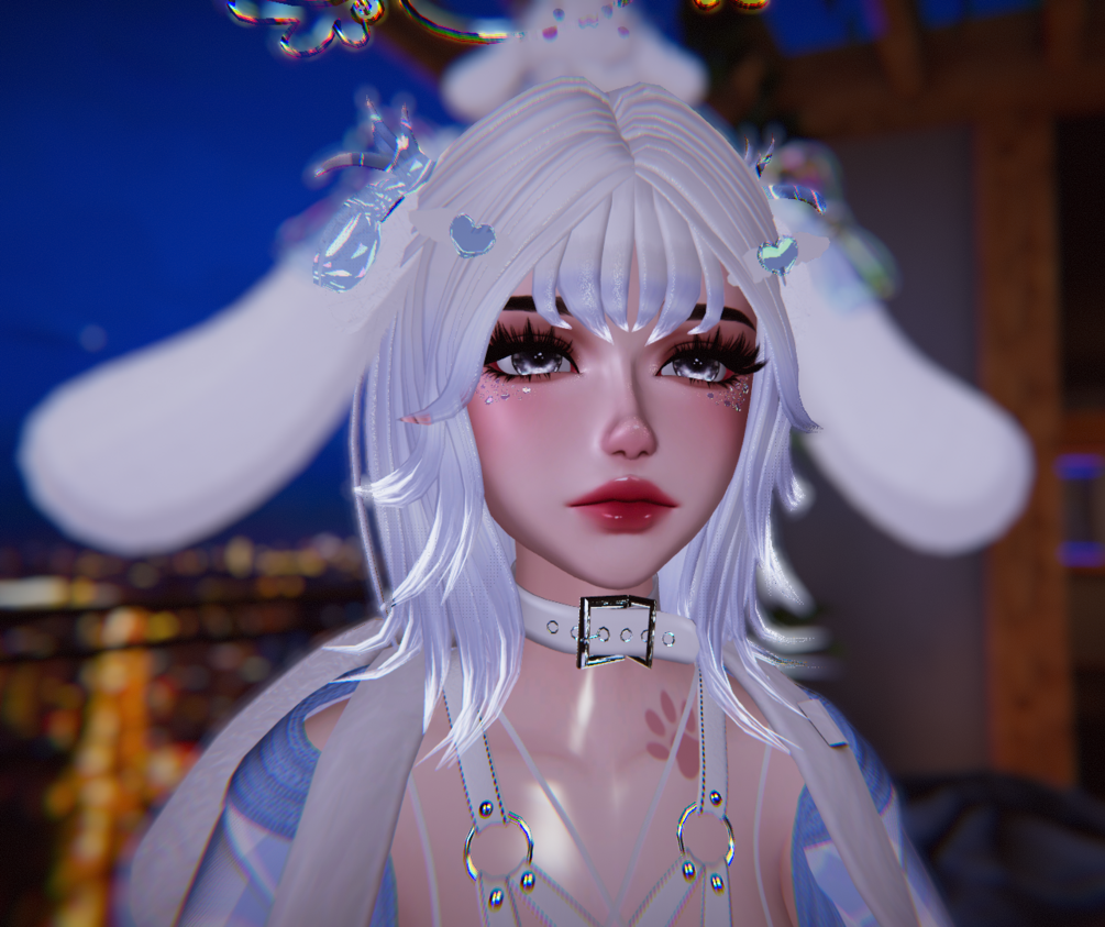 Accessories: Harness , Garters , Face stones , Bow , Hair clips , Halo , Ears , Backpack , Cinnam0r0ll , Mouth charm , Choker , Arm warmers , Tail , Wings , Cupcake .