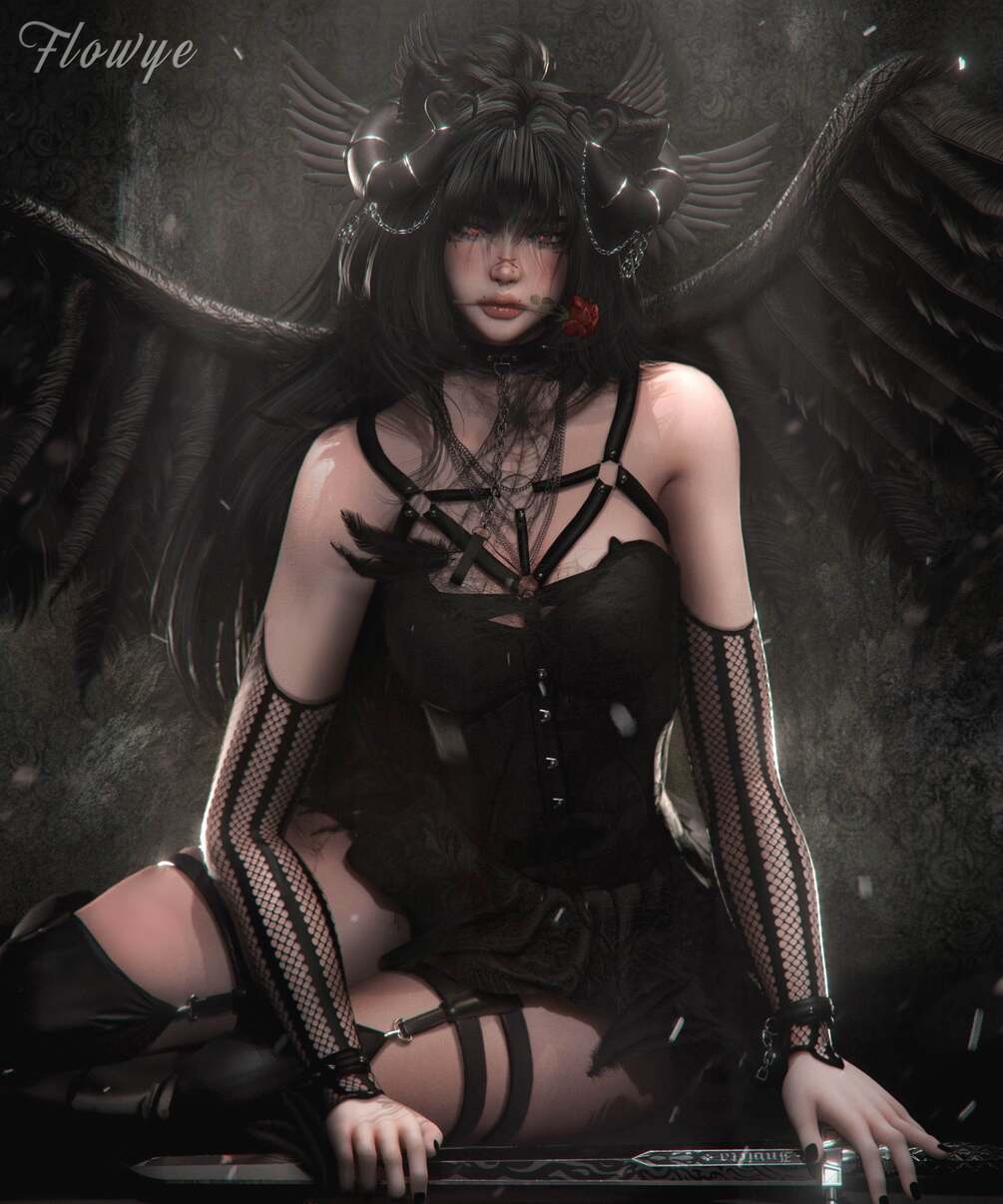 Accessories: Blindfold ; Earrings ; Ears ; Head wings ; Horns ; Halo ; Ophanim ; Leaf crown ; Pendants ; Rose ; Piercings ; Choker ; Hair clips ; Head cross ; Arm cuffs ; Arm ribbon ; Sleeves ; Claws ; Feathers ; Gloves ; Hands ; Nails ; Neck feathers ; Wired choker ; Necklace ; Garters ; Back swords ; Tail ; Waist chain ; Wrist cuffs ; Sword with particles ; Lantern followers ; Flare spotlight ; Craw .